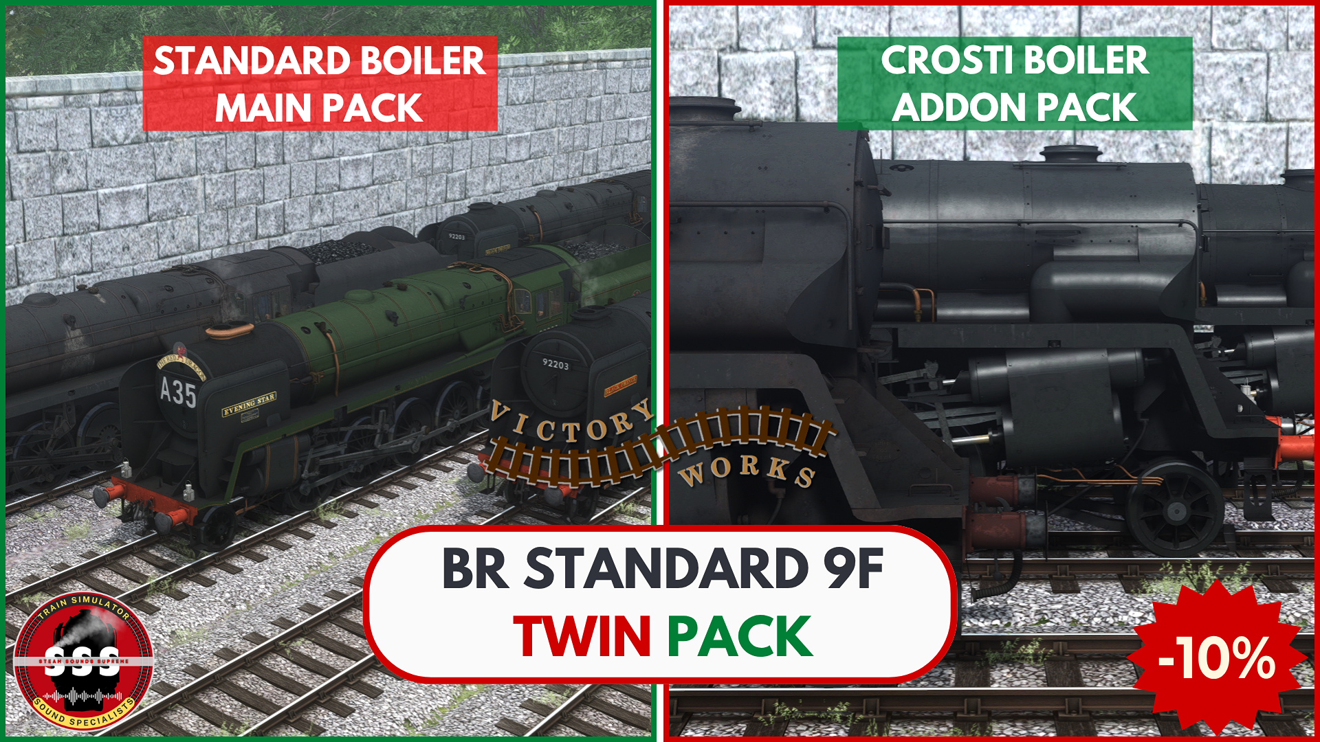 Combine Victory Works' popular BR Standard 9F Pack and the Crosti-boilered Addon Pack and SAVE 10%